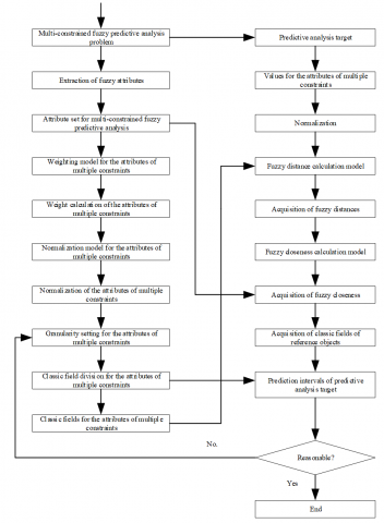 The remainder of this paper is organized as follows: Section 2 introduces the basic concepts of multi-constrained fuzzy predictive analysis; Section 3 presents our algorithm and model for multi-constrained fuzzy prediction, explains the normalization, weighting, granularity setting and classic domain of the attributes of multiple constraints, and details the steps of multi-constrained fuzzy predictive analysis; Section 4 verified our algorithm and model for multi-constrained fuzzy prediction through comparative analysis; Section 5 puts forward the conclusions of this research.