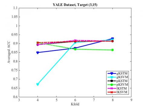 The gKSTM, gKSVM, pKSTM and pKSVM were evaluated on YALE dataset. Since both the STM and the SVM are binary classification machine learning models, two types of training samples, positive and negative, were selected randomly for each experiment.