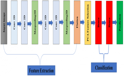 In this study, four models were employed, including CNN, CNN-PCA, VGG16, and VGG16-PCA. These models attained notable levels of accuracy, with percentages of 93%, 94%, 97%, and 96%, respectively.