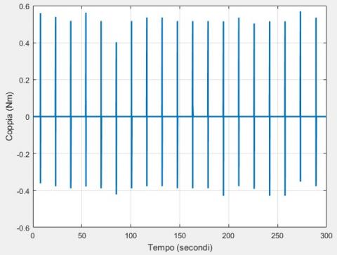 From the control point of view, the step response presents the trend of a feedback control system of the first order. In fact, with the electrical characteristics of the motor and the mechanical characteristics of the reflector under consideration, no settling oscillations of any kind are generated. Finally, in Figure 14, a zoom of the delivered torque is shown, which is cancelled with a time of about 3 seconds.