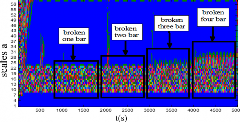 Among the works for broken bar detection is the work of [7-8] presents role Wavelet Transform (WT) for analysis the startup transient the current signals of squirrel cage induction motor with broken rotor bars [9]. Who proposes failure predictions in three phase line-operated induction machines through spectral analysis of electric and electromagnetic signals, through frequency signature of some asymmetrical motor faults [10]. Present an algorithm for the online detection of rotor bar breakage in induction motors through the use of wavelet packet decomposition (WPD) and neural networks used by motor stator current, for extracted features with different frequency resolutions. [11] focuses on the study of an approximation signal resulting from the wavelet decomposition of the start-up stator current using neuro fuzzy logic for find the rotor bar failures.