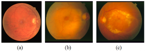(a) Background diabetic retinopathy; (b) Retinal artery occlusion; (c) Arteriosclerotic retinopathy