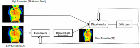 Thermal cameras are imaging systems that are based invisible infrared energy and provides the general structure of the image as colors and shapes formed according to this infrared energy. Thermal systems have an important position as a non-invasive and harmless method for applications to be performed on living beings such as humans and animals, as they can provide non-contact temperature measurement. Thermal imaging devices can be used as an important problem diagnosis tool in some areas that require the detection of thermal variations, especially in military and civilian areas [1]. Despite the widespread use, low-cost thermal imaging systems create blurry images with insufficient edge detail information. In this case, the resolution of thermal images used for various problems such as disease diagnosis in medical fields can greatly affect the success. For such reasons, the interest in studies to improve the resolution of thermal images has increased in recent years. In addition, the effective use of super-resolution techniques on thermal images can be an alternative to thermal camera systems, which are costly [2].