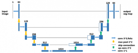 The U-net is simple in structure and is used for image semantic segmentation, with the image under segmentation as input and segmentation results as output. The U-net is mainly composed of three parts: down sampling, up sampling, and skip connection. Down sampling achieves insight and expression of image features, up sampling realizes image restoration, and skip connection preserves and transmits image information of the same size. U-net is a lightweight network with 28 megabits of parameters. Its structure has good adaptability. Similar to the FCN, U-net is often used as the basic skeleton network.