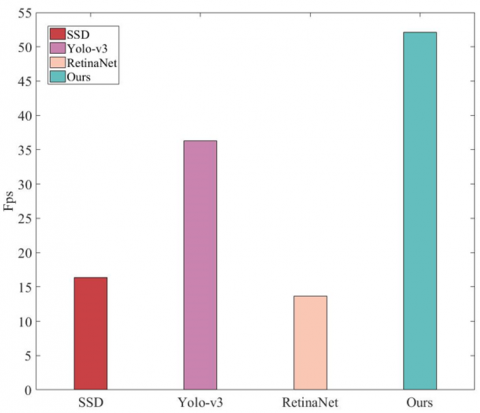 We perform a series of comprehensive experiments to assess the algorithm's performance, comparing it against other single-stage object detection algorithms, namely SSD [16], YOLOv3 [17], and RetinaNet [18], as depicted in Figures 7-9. Our findings reveal that the algorithm proposed in this paper exhibits superior average detection accuracy compared to its counterparts. Additionally, it demonstrates faster inference speed and boasts a smaller model parameter size, rendering it particularly well-suited for deployment on data collection devices with constrained storage capacity.