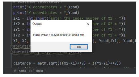 Once the edges are identified, FlankPix utilizes distance measurement techniques to determine the amount of wear along these edges precisely. It involves calculating the distance between specific points on the edges, allowing for an accurate estimation of the flank wear's extent. By integrating distance measurement with the information obtained through Canny Edge detection, FlankPix ensures a detailed assessment of the tool's wear, improving accuracy in evaluating tool conditions and ultimately enhancing manufacturing quality.