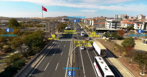 Furthermore, simulation programs are also employed to evaluate intersection efficiency and conduct optimization studies. SUMO (Simulation of Urban Mobility) is a widely used open-source software for modeling and analyzing urban transportation systems and traffic flows. It is particularly valuable in research and development activities related to intelligent transportation systems, traffic engineering, and transportation planning [23-25]. Given its open-source nature, SUMO is one of the most extensively utilized simulation programs on a global scale. The SUMO program enables the accurate modeling of real-world intersections, facilitating the operation of these intersections using actual traffic data. The simulation environment allows for the determination of parameters such as delay and wait times, thereby providing valuable insights into the performance of intersections. Signaling systems operate using a variety of methodologies. Fixed-time signaling systems are the most widely used worldwide due to their simplicity and cost-effectiveness. However, these systems frequently demonstrate inefficiencies in terms of performance. In a fixed-time signaling system, the phase durations and number of phases are predetermined, thereby enabling the system to allocate the right of way to traffic from different directions in accordance with set intervals. These fixed intervals are repeated in a cyclical manner. As a result of technological advances, adaptive signaling systems have become increasingly common in the field of intersection management. In contrast to fixed-time systems, adaptive signaling systems are capable of dynamically adjusting phase durations and phase numbers based on real-time data. This data may include, but is not limited to, information regarding intersection traffic density, inter-vehicle spacing, average speeds within the intersection, queuing patterns, data from neighboring intersections, and vehicle presence/absence information [26-29]. The capacity to precisely quantify traffic data and the efficacy of control algorithms contingent upon these measurements are pivotal elements in the functionality of adaptive signaling systems. In this study, an adaptive control system is developed through the creation of a signaling improvement model. The adaptive signaling control model is implemented at a real-world intersection, and its performance is subsequently analyzed. The model employs a fusion of loop sensors and Bluetooth sensors, representing a significant innovation in this research field: the inaugural application of Bluetooth and loop sensor integration in adaptive traffic management. The sensors have been installed at the Polatlı Sanayi Intersection with the objective of facilitating the implementation of an improved signaling model, which will subsequently be operated as the intersection's signaling control system. This study makes a notable contribution to the field by developing an adaptive signal control model that incorporates real-time feedback. The system is designed to continuously evaluate the conditions at the intersection based on data obtained from sensors. This data is subsequently utilized to modify signal timings, and the results of these adjustments are incorporated into an iterative process to enhance the timing algorithm continuously. The performance of the developed signaling improvement model is evaluated based on two key performance indicators: delay and level of service (LOS). The delay is calculated using visual detection from a camera installed at the intersection, and LOS values are derived from these delay measurements. Verification studies are conducted to validate the delay values obtained through visual detection by comparing them with results generated using the SUMO simulation program and Webster's theorem.