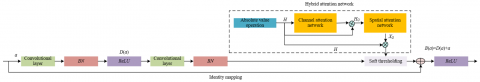 In the task of predicting the RUL of mining equipment, both temporal and spatial features of the signal exert a significant influence on predictive performance. Traditional deep residual shrinkage networks typically generate feature vectors by applying absolute value transformation and global average pooling (GAP) to the input signal, followed by element-wise multiplication with channel attention weights to determine thresholds. However, such an approach neglects spatial domain information, which causes the models to fail to fully consider the influence of spatial position on signal features when processing grayscale images of mining equipment vibration signals. These signals often exhibit complex spatial patterns and structural features that are strongly correlated with the equipment's health status and RUL prediction. Variations in spatial features at different time points and under differing operational conditions directly affect the precision of the RUL prediction. As a result, traditional models relying solely on channel-domain information are insufficient to meet the practical requirements of RUL forecasting in mining environments, and often result in degraded prediction performance. To address this limitation, a novel residual shrinkage model was proposed in this study, designed to simultaneously capture both channel-domain and spatial-domain feature information.