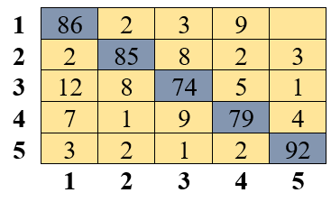 During the experiments, it was observed that Resnet50 and Inceptionv3 architectures achieved the highest accuracy value. Both of these architectures reached 83.33% accuracy value. These two architectures are followed by Mobilenetv2, Alexnet, Shufflenet, and Efficientnetb0 architectures with 80%, 79.33%, 78.67%, and 60% accuracy, respectively. With an accuracy score of 60%, the Efficientnetb0 architecture has the lowest accuracy value among the deep models used in this work. Table 3 shows the confusion matrices derived from deep models.
