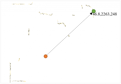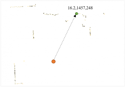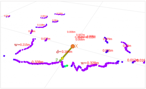 The overall representation of the target object is illustrated in Figure 6, where X denotes the coordinate origin of the radar, p represents the core point of the current clustering object, the width is 0.338m(w = 0.338), and the distance from the radar origin to the core point is 0.164m(d = 0.164).