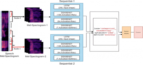 (b) The inclusion of numerous LSTMs at the score level, each of which corresponds to a distinct duration of the image-like spectrograms generated from each utterance. The experimental findings demonstrate that our strategy achieves better outcomes than the current best practices.