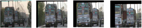 The stabilization quality can be compared for five consecutive frames 34-38 in Figure 19 (a) and (b). It can be seen that the object in the truck is better visible in stabilized video frame as shown in the red square. The quality of the stabilized rotation can be observed by the pillar in Figure 19 (c) and Figure 19 (d). The Highway Video depicted in Figure 19 contains large, rapidly moving objects throughout the scene. This leads to numerous frames susceptible to blurring effects. The proposed method has effectively addressed this issue by producing stable and visually appealing frames.
