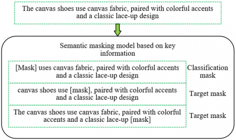 This module enhances the extraction of core semantics in e-commerce texts through a combined strategy of targeted masking and random masking, thereby addressing issues commonly observed in traditional textual feature extraction—namely, interference from marketing terms and the dilution of critical semantic content. In e-commerce descriptions, category terms such as “sneakers” and attribute terms such as “non-slip sole” or “breathable mesh” serve as essential semantic bridges connecting product features to user needs. In contrast, marketing expressions such as “hot sale” or “limited time” constitute non-essential information. The module first applies random masking to 15% of the input tokens, which preserves the model’s ability to comprehend overall textual semantics. On this basis, category terms and key attribute terms are forcibly tagged and masked with higher probability or subjected to random replacement. For example, in the phrase “non-slip sneakers, limited-time discount,” the terms “non-slip” and “sneakers” are preferentially masked to compel the model to strengthen its semantic encoding of these critical elements during training. This approach not only prevents the model from overfitting to non-informative marketing content but also leverages a “deletion-prediction” learning mechanism to deepen the representation of key semantics. As a result, the extracted textual features are more accurately aligned with genuine user intent.
