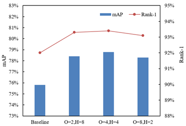 Figure 6. Performance of the improved window attention module under different window sizes O and grid sizes H