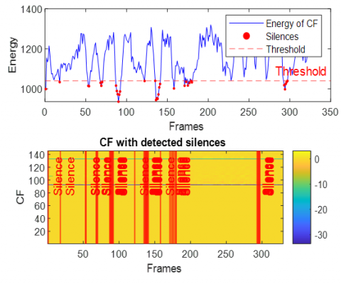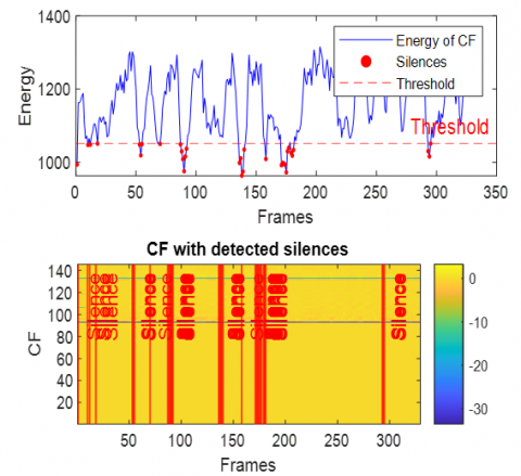 The procedure begins with signal normalization to reduce amplitude variability, followed by the extraction of Mel-Frequency Cepstral Coefficients (MFCCs), which are commonly used in speech and audio analysis for their ability to capture phonetic and spectral content. To complement these, additional perceptual and cepstral features, including Gammatone Cepstral Coefficients (GTCCs), their first and second temporal derivatives, and energy-based spectral descriptors from the ERB, Bark, and Mel scales, are computed using the audio Feature Extractor. All extracted features are then concatenated into unified vectors representing each time frame of the speech signal. To further refine the training data and improve the model’s ability to distinguish between active and inactive speech regions, a silence detection step based on frame energy is applied. The resulting feature set provides a rich and discriminative representation of the acoustic signal.