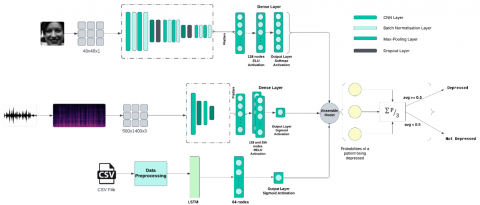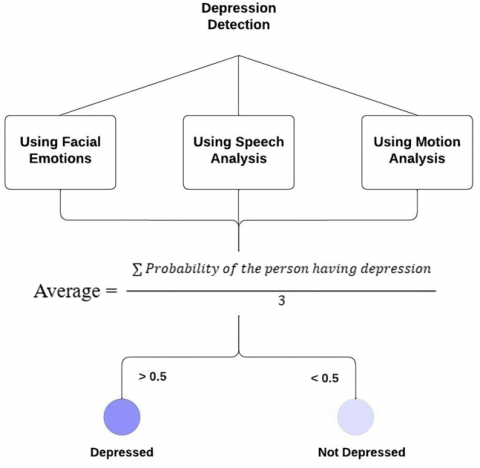 When the combined predictions from the three individual models surpass the 50% threshold, the ensemble model classifies the individual as depressed, indicating a collective agreement among the facial, speech, and motion analysis components that the person is exhibiting signs of depression. Conversely, if the ensemble prediction falls below the 50% threshold, the individual is classified as not depressed, suggesting a consensus among the models that the emotional state does not align with depressive patterns.