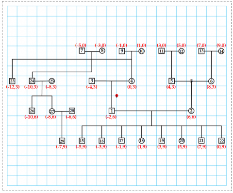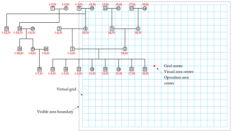 Reposition each node to keep the pedigree centered in the visible area, as shown in Figure 18. At the same time, create a grid array to store node identifiers, as depicted in Figure 19. This setup enables quick retrieval of node data using screen coordinates during user interactions.