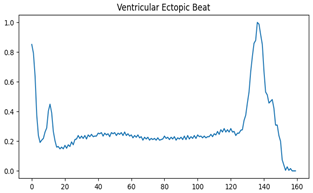To train our system for arrhythmia classification, we leveraged the well-established MIT-BIH arrhythmia dataset. This dataset adheres to the Association for the Advancement of Medical Instrumentation (AAMI) EC57 standard [55] and encompasses 48 ECG recordings, each lasting 30 minutes. The recordings originated from 47 different patients. The dataset features digitized ECG data with a sampling rate of 360 Hz per channel, 11-bit resolution, and two types of ECG signals-Lead II and Lead V5-captured within a 10 mV range. For this experiment, we specifically focused on Lead II ECGs. We extracted the ECG recordings, applied appropriate scaling, and segmented them into five categories (Table 1, Figures 5-9): Normal (N), Supraventricular (S), Ventricular (V), Fusion (F), and Unknown (Q) [56].