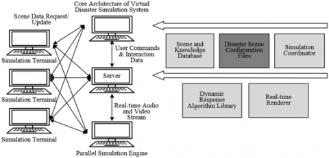 Figure 2. Core architecture of the simulation system for virtual disaster drills