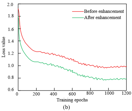Figure 5. Comparison of accuracy and loss values of the proposed method before and after feature enhancement