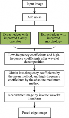 Figure 3 shows the algorithm fusion steps. First, input the garment image and introduce noise, then process it through the dual-edge detection branches in parallel. The improved Canny operator captures the gradient changes of garment edges based on gradient calculation, while the improved morphological operator retains structural features such as fabric texture and wrinkles through structural element operations. The two edge images are then subjected to wavelet decomposition, breaking them down into low-frequency coefficients representing the overall contour and high-frequency coefficients depicting detailed changes. During the coefficient processing phase, the low-frequency coefficients are processed using the mean method, while the high-frequency coefficients are processed using the absolute value maximum method. Finally, the image is reconstructed using inverse wavelet transform, fusing the edge features optimized in different frequency domains from the two branches, outputting a fused edge image that retains the continuity of the overall contour of the garment and enhances the recognition of fine details.