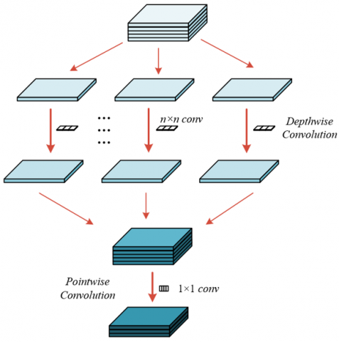 In the decoder module, depthwise separable convolution was adopted with the primary objective of significantly improving computational efficiency while maintaining segmentation accuracy. This design choice represents a critical engineering consideration for large-scale remote sensing applications. In semantic segmentation models—particularly those employing encoder-decoder architectures such as U-Net—high-level, low-resolution feature maps must be progressively upsampled to match the resolution of the original input. This process typically involves extensive convolutional operations. If conventional standard convolution were employed throughout the decoder, both parameter count and computational load would increase dramatically, as standard convolution simultaneously performs spatial filtering and channel fusion, requiring the number of convolutional kernels to match the number of input feature map channels. Such a configuration results in an excessively heavy model. Depthwise separable convolution addresses this limitation by decomposing the process into two independent steps. In the first stage, depthwise convolution, each kernel is responsible only for spatial feature extraction within a single input channel, thereby avoiding cross-channel computations and substantially reducing the number of parameters. In the second stage, pointwise convolution is performed using 1 × 1 kernels to achieve channel fusion at a relatively low computational cost. This decomposition enables the design of deeper or wider models within the same computational budget, allowing for more layers or channels to be incorporated in order to strengthen feature representation capacity. Consequently, the decoder is able to reconstruct hotspot segmentation maps with rich details and sharp boundaries without compromising efficiency. The detailed architecture of this module is presented in Figure 2.