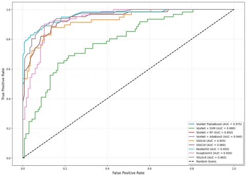 Figure 8. The AUC-ROC graph illustrating the performance of the proposed CovVoxTrada appraoch and other models on global chest X ray dataset used for the training and testing