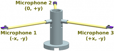 where, $c$ is the speed of sound in air and $d_{-} c$ is distance in meter calculated by using $c$. These distance differences for microphone pairs are referred to as $d_{12}, d_{13}, d_{32}$ in the following sections.