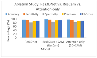Proposed ResCAM employs Res3DNet as the mainstay network to categorize attributes extracted from input images. The dense and softmax layers of Res3DNet achieve classification. CAM is mainly used to select the significant attributes that are strong enough to represent the local differences. The features from each spatial domain are considered here. ResCAM not only increases the receptive area of kernels across layers but also decreases memory and computational overhead by decreasing the resolution of the feature maps while preserving significant information required for classification.