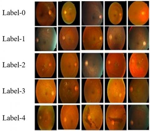 PDR is a more progressive and severe stage of DR. In this stage, new and anomalous retinal blood vessels are developed, which can bleed into the vitreous and cause low vision or even permanent impairment. Figure 1 illustrates each stage of retinopathy. Early recognition of this disease is a complex process as it is asymptomatic or appears with slight signs, leading to vision impairment [7]. If diabetic retinal disease is identified early, ophthalmologists create small burns around the retinal tears using lasers to avoid fluid seepage and prevent the development of new blood vessels that avert blindness.
