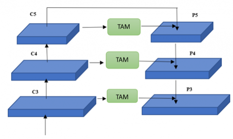 By integrating the Triplet Attention mechanism into each layer of the FPN (e.g., C5 to P5, C4 to P4, and C3 to P3), the network effectively captures the relation between the channel and spatial dimensions, addressing the limitations of previous approaches. Additionally, the Triplet Attention module introduces minimal computational overhead, making it suitable for integration into FPN architectures.