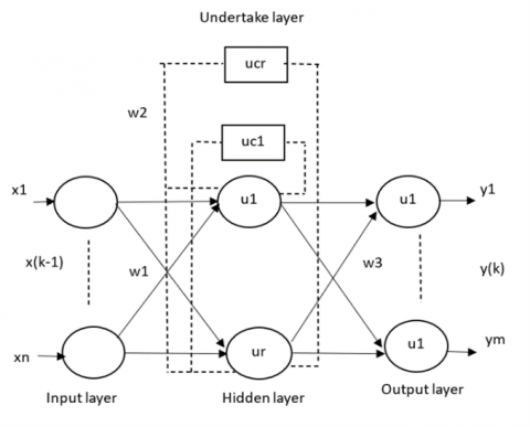 The ENN is a feedback Neural Network (NN) that extends the traditional back propagation neural network by adding an additional layer called the "undertake" layer, which serves as a delay operator for memory purposes. This allows the network to adjust to time-varying dynamic features and exhibit strong global stability. The network architecture consists of four layers: input layer (IL), hidden layer (HL), undertake layer (UL), and output layer (OL) as shown in Figure 5. The undertake layer remembers the output of the hidden layer, acting as a step delay operator and enabling sensitivity to historical data. This internal feedback mechanism enhances the ability of a network to handle dynamic information and adapt to time-varying characteristics, thereby providing a dynamic mapping function.