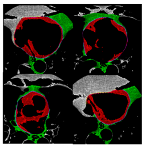 The term ‘Epicardial fat (ECF)’ is defined as the fat deposits on the heart muscles and their surroundings by a thin pericardium membrane [1]. It is essential to differentiate ECF from paracardial fat that is positioned outside the pericardium. This fat is often connected with other fat deposits in the area of the mediastinum [2], as shown in Figure 1. The ECF is known to release pro-inflammatory substances and contribute to atherosclerosis growth in the coronary arteries. The ECF volume holds clinical significance because of its association with major adverse cardiovascular events. Thus, an accurate ECF volume evaluation plays a major role in diagnosing cardiac conditions.