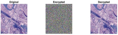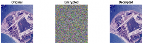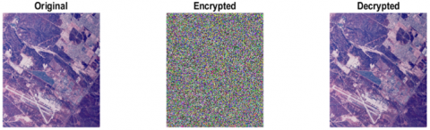 Figures 4-7 show the encryption scheme applied to different Satellite images.