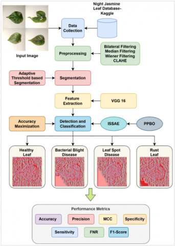 night jasmine leaf disease detection and classification, Adaptive Threshold-based Segmentation, VGG-16, ISSAE, PPBO