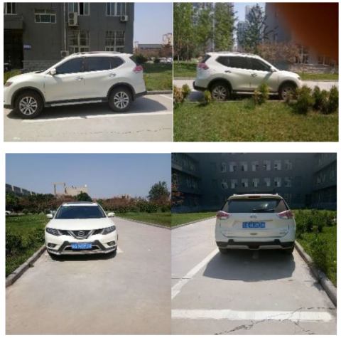 The experimental samples are: car, truck, electric motorcycle. The visible light images of the four front and rear left and right views of the car are collected, as shown in Fig.14, the visible light images of the four front and rear left and right sides of the truck are collected, as shown in Fig.15, the front and rear visible light images of the electric motorcycle are collected, as shown in Fig.16.