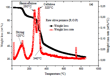The raw olive pomace (R.O.P) was coming from a semi-traditional unit of olive oil extraction using a three-phase continuous system. This agricultural waste was composed of a mixture of olive skins, pulp residues, core fragments, water and a quantity of residual oil. Before these experiments were conducted, the biomass was dried in the open air and with solar drying [23, 25].