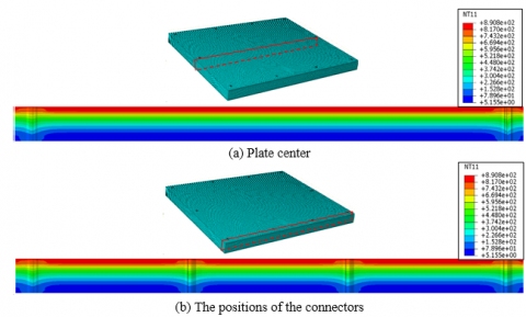 (5) The results of finite-element simulation agree well with the measured data on heat transfer process of the target walls. In addition, the positions of the connectors are the main channels of heat transfer, which greatly reduce the fire resistance limit of the said walls.