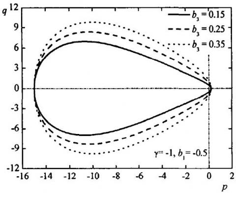 $\left\{ \begin{matrix} p=\left( \left( 1-{{b}_{2}}~sin\omega \right)\left( 1/2\text{ }\gamma +{{a}_{3}}~\text{ }cos\omega \right)+{{a}_{2}}\text{ }{{b}_{3}}~\text{ }sin\omega ~\text{ }cos\omega \right)\left( {{p}_{t}}-{{p}_{c}} \right)/\Delta \\ q=\left( {{b}_{1}}~sin\omega \text{ }\left( 1/2\text{ }\gamma +{{a}_{3}}~cos\omega \right)+{{b}_{3}}~sin\omega ~\text{ }\left( 1-{{a}_{1}}\text{ }cos\omega \right) \right)\left( {{p}_{t}}-{{p}_{c}} \right)/\Delta \\\end{matrix} \right.$ (26)