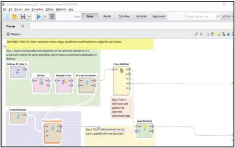 This is the initial phase of our research framework where we have gathered six different datasets as tweets related to Air Asia, Air India, Spice jet, Indigo, Go Air and Vistara airlines using various travelling online web sources such as Tripadvisior, Skytrax, Makemytrip, Trustpiolet, Mouth shut etc. through the Webharvy data fetcher tool. For our research paper, we wanted to gather information or data from various Indian airlines and extract the precise sentiments of tweets for each and every airline company and in addition to develop a modelthat provides a proper recommendation of airline among the various airlines. We used the Rapid Miner machine learning tool for optimizing the sets of data sets.
