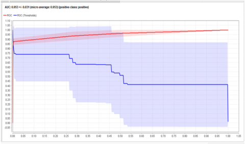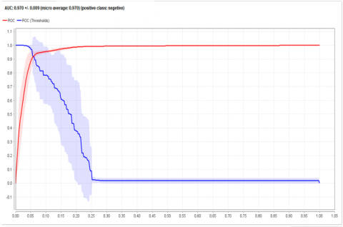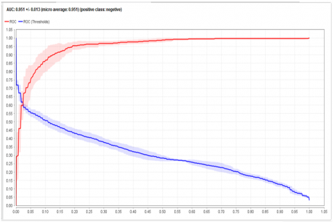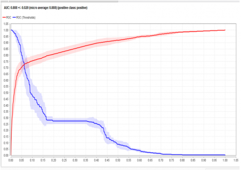 The Figure 8 below shows the AUC curves have calculated because if the model has a probabilistic scoring system where scores above a certain threshold are identified as positive, then the elements of the confusion_matrix will depend on the threshold. The space beneath the curvature (AUC) is calculated simply adjusting the threshold and plotting a point (x, y) for each threshold value:
