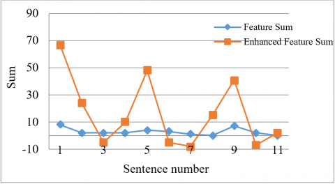 Figure 8. Feature sum versus enhanced sum for each sentence