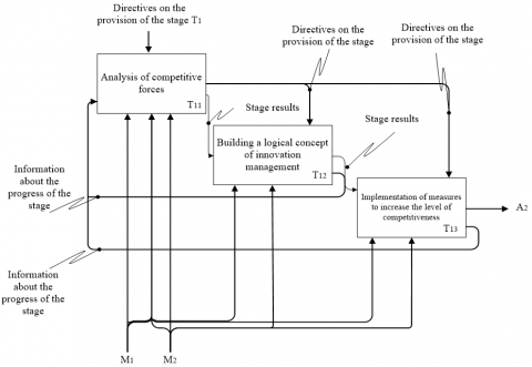 The input characteristics of the innovation management system are material, energy, information, and cognitive flows. Baselines are new or upgraded, highly competitive processes, products, services, etc.