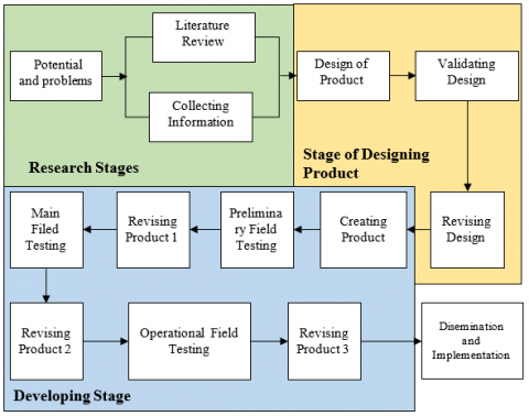 To design this teaching material, the researchers need strategies that starts from the stages of 1) research, 2) designing product, and 3) development [33]. The three strategies are presented in Figure 1.