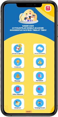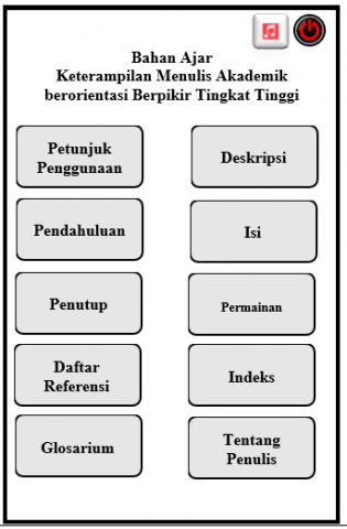 Meanwhile, the prototype of the main menu of mobile learning-assisted academic writing teaching materials can be seen in Figure 8.