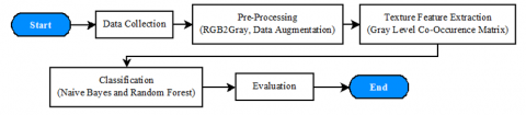 The fundamental difference from the previous research is that it uses two classification techniques, namely NB and RF, and uses 6 feature extraction features in terms of texture and viewed from 4 angles.