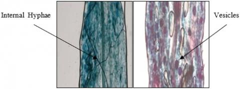 Figure 10. AMF colonization on the roots of A. macrophyllus aged 6 months after planting on limestone post-mining soil