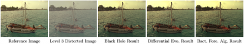 BFA is inspired by bacteria's behavior in perceiving and obtaining nutrients [21]. Hanmandlu et al. employed BFA in an IE problem, proposing an approach to enhance color images using fuzzy logic optimized with BFA [22]. They reported that BFA yielded better performance metrics than GA.