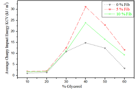 Figure 8. Mean charpy impact power of a matrix (40% glycerol) earlier than and after reinforcement