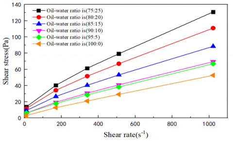 Figure 4. Rheological curves of drilling fluid under different oil-water ratios